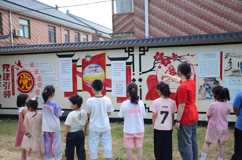 下午,由志愿者帶隊,孩子們去參觀了社區的黨建文化墻。參觀黨建文化墻是一次深刻的精神洗禮,它展示了中國共產黨的發展歷程和輝煌成就。黨建文化墻以圖文并茂的形式,記錄了黨自成立以來的重要歷史時刻、黨的理論創新、黨的光輝人物以及黨的各項重大決策。