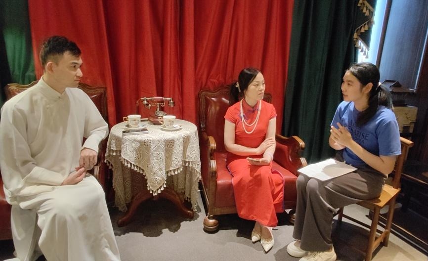 當日下午5點,調研小隊來到蘇州平江路的月出·半遮面評彈館進行表演欣賞,采訪了兩位資深評彈演員——徐文龍老師和朱怡老師。