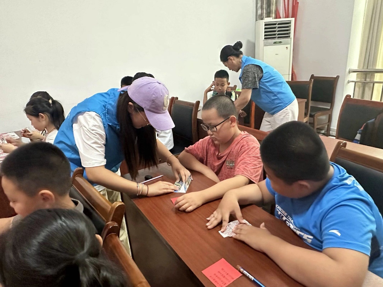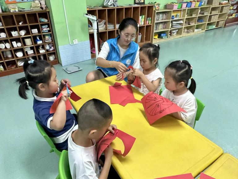圖為臉譜剪紙活動中實踐隊員手把手教學剪紙中的戲曲元素,此活動旨在實現戲曲文化的“美”育。高川雲 供圖