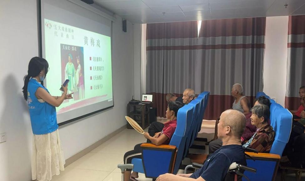 圖為實踐隊員在聊城市開發區智慧養老服務中心開展戲曲文化科普活動,通過通俗易懂、真實有趣、更貼近老年人生活方式、思維方式的展示和表演,向老年群體講解戲曲相關知識、共同欣賞經典戲曲片段、進行積極的互動交流以及現場表演,旨在實現戲曲文化的“勞”育。高川雲 供圖