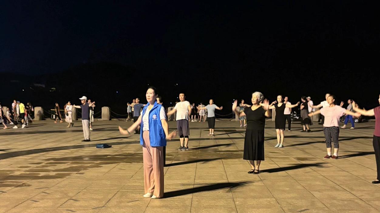 圖為實踐隊員向居民們教學廣場舞的各種身段。此次活動以“戲曲+體育”的創新模式,將傳統戲曲身段與廣受歡迎的廣場舞相結合,不僅讓戲曲這一傳統文化瑰寶走進千家萬戶,更為社區居民提供了一種全新的健身方式,提升居民身體素質,增強社區文化活力。王麗婻 供圖