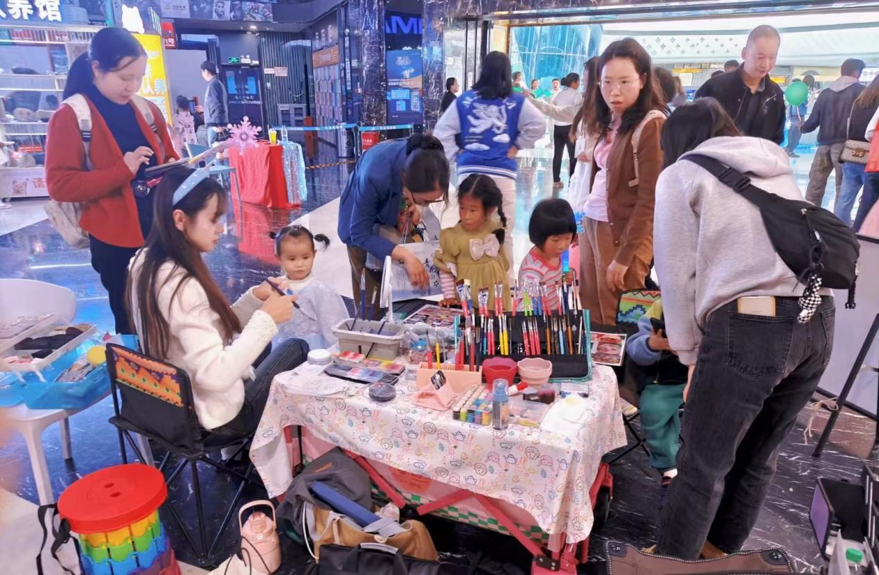 圖為實踐隊邀請的面部彩繪師在小區里給孩子們畫臉譜畫。旨在通過彩繪的藝術方式使居民們對戲曲文化元素產生更深層次了解。徐寧 供圖