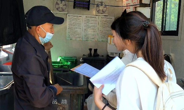 圖為成員采訪垃圾分揀員。歐陽文杰 供圖