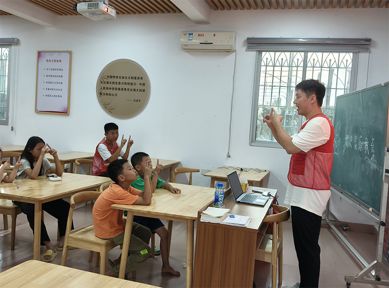 活動現場,實踐隊成員們用飽滿的熱情,生動的方式進行自我介紹,以觀看視頻、案例講解、問答討論的方式進行了安全教育與法治知識的講授,讓小朋友們在快樂中學習自我保護,寓教于樂。為加深小朋友們對課堂知識的理解,實踐隊成員還設置了相關知識競答環節,小朋友們熱情高漲,認真思考,踴躍舉手搶答,現場氣氛十分活躍。最后,實踐隊成員帶領孩子們做了手指操,在輕松愉快的氛圍中結束了一天的講授。活動結束后,實踐隊成員在樓院向居民發放普法宣傳小冊子、宣傳單,用通俗易懂的語言及鮮活的案例釋法,引導居民更好地理解學期教育法與家庭教育法的內容,讓法律法規走進居民身邊。