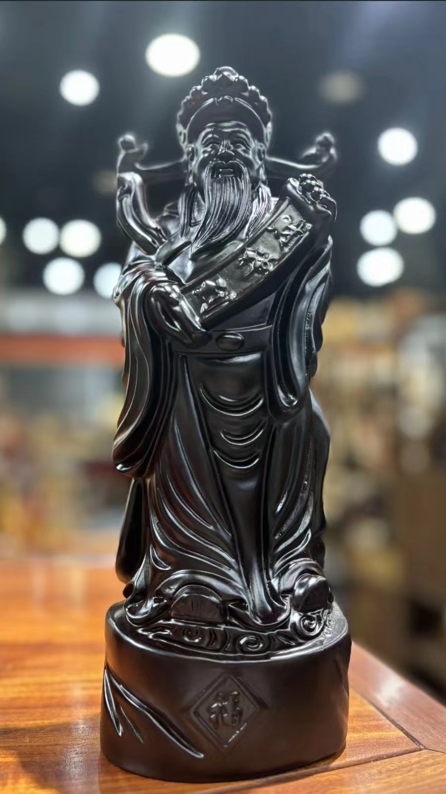 圖為木雕作品財神到我們目睹了匠人們在創作時的專注與耐心,他們的眼神堅定而深邃,仿佛與手中的木材進行著無聲的對話。刻刀在他們手中輕盈舞動,每一次切割、每一次雕琢,都是對木材的深刻理解和尊重。隨著木屑的飄落,木材內部的生命力逐漸被喚醒,展現出千姿百態的生動形象。