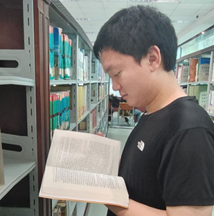 (圖為團隊成員高暢在南京圖書館查看資料)