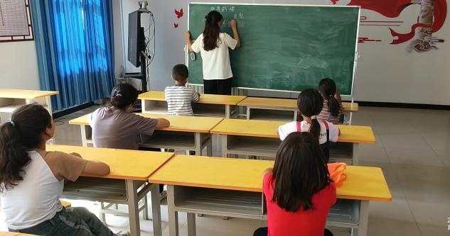 2024年7月30日安徽工業大學石榴籽推普社會實踐隊成員在新疆阿克蘇地區阿克蘇市依干其鎮良種尤喀克喬格塔勒村進行推普實踐活動。