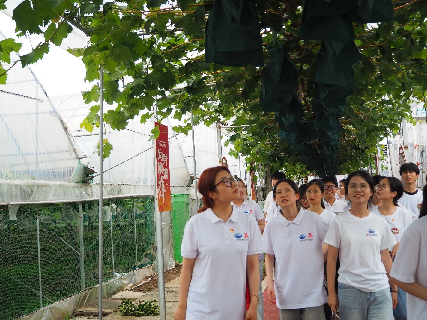 實踐團成員重走紅色田園路并參觀蔬菜水果大棚