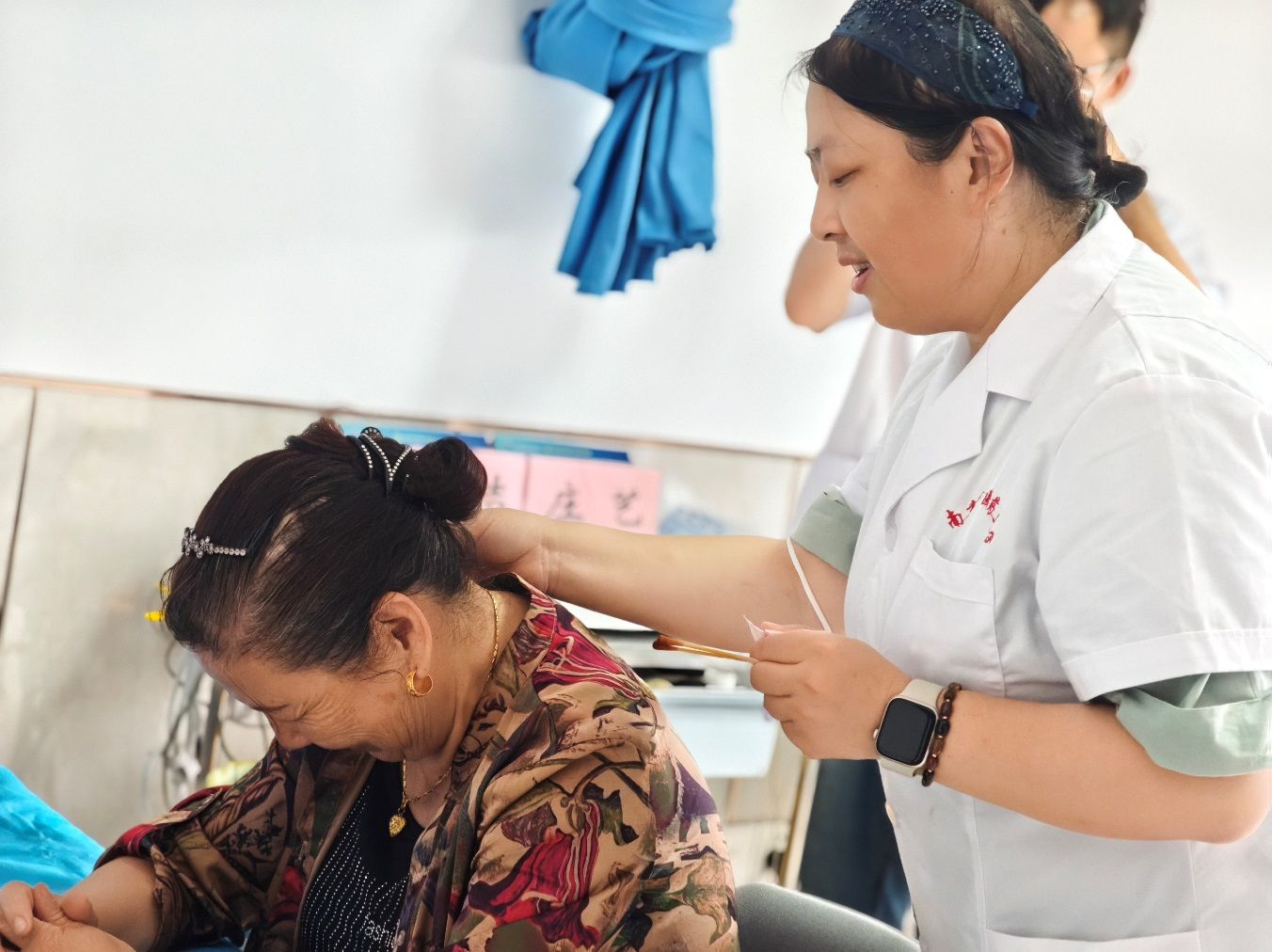 學生志愿者為村民們推拿