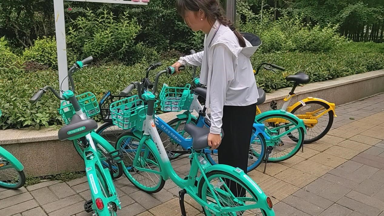 (圖為搬運盲道上的共享自行車,郭佳瑞同學拍攝)