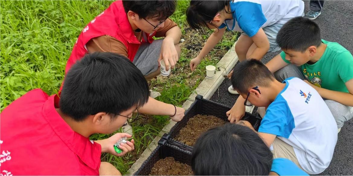 勞動實踐,智育田園。一粥一飯,當思來處不易;半絲半縷,恒念物力維艱。在農業知識課上,“智慧菜園”實踐團的志愿者們通過圖文并茂、生動有趣的PPT,引領孩子們深入探索植物生長的奇妙世界與蔬菜栽培的智慧藝術。“印象最深刻的就是水稻的起源和命名,是我們的科學家通過對水稻基因組變異研究證明了水稻起源于中國。”有小朋友聽完分享后說道。在實踐活動環節,孩子們被分成三個小組分別種植小蔥,小生菜和豆芽菜。在志愿者的帶領下,孩子們拿著小鏟子與水壺,專心致志的松土挖坑、播種、蓋上土壤和澆水,學習勞動技能,體驗勞動的快樂。“這次實踐也讓我們扎根新農村,深入新農業,體驗新農人,對勞動精神有了更深刻的體會。”實踐團成員如是表示。