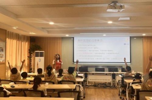 圖為劉馨怡老師正在講解骨折固定的注意事項及小朋友們進行實操演練 通訊員袁錦皓供圖