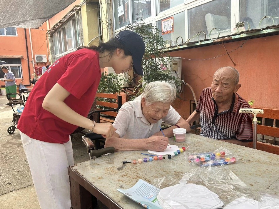 除了主題宣講以外,志愿者們還開展了“畫扇傳書”活動(dòng),起初老人們可能還有些羞澀,覺得自己畫畫的技術(shù)不太好。但是在志愿者們鼓勵(lì)下,有的老人寫下了自己的名字,獨(dú)樹一幟且飽含風(fēng)骨。有的老人把今天宣講的肺結(jié)核的知識(shí)畫到了扇子上,還在畫完之后又一次對(duì)志愿者們豎起大拇指,表示自己有牢牢記住今天的知識(shí)。