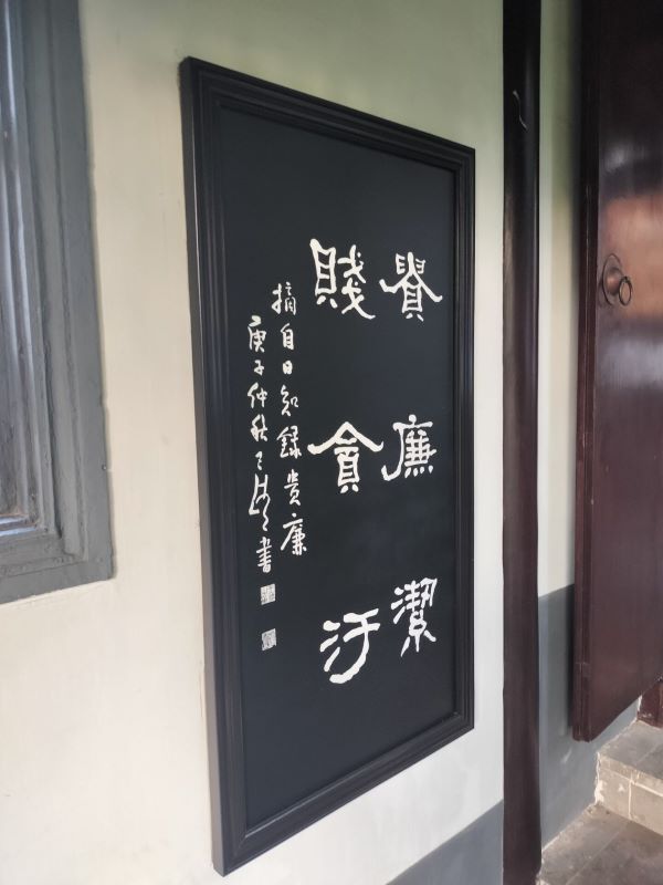 還未走進顧炎武紀念館,顧炎武先生的雕塑像就立于紀念館的門前,后面有一行石碑上刻著的大字“天下興亡、匹夫有責”,紅色的石碑刻字發人深醒,我負責將此用照片記錄下來,準備在線上會議室用這張照片作為開題。“天下興亡、匹夫有責”這句話并不是由顧炎武先生所言,而是由“保天下者,匹夫之賤,與有責焉耳矣”經后人概括而來。但主題表達的意思一致,是指整個社會出現道德沉淪,即使普通民眾都應當奮起救贖。習近平總書記多次引用“天下興亡,匹夫有責”這句古語。在紀念中國人民抗日戰爭暨世界反法西斯戰爭勝利69周年座談會上,他強調:“在中國人民抗日戰爭的壯闊進程中,形成了偉大的抗戰精神,中國人民向世界展示了天下興亡、匹夫有責的愛國情懷,視死如歸、寧死不屈的民族氣節,不畏強暴、血戰到底的英雄氣概,百折不撓、堅忍不拔的必勝信念。”