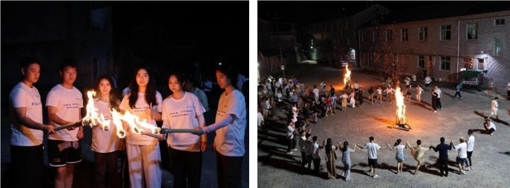 團(tuán)隊成員共同參與火把隊列參加篝火晚會