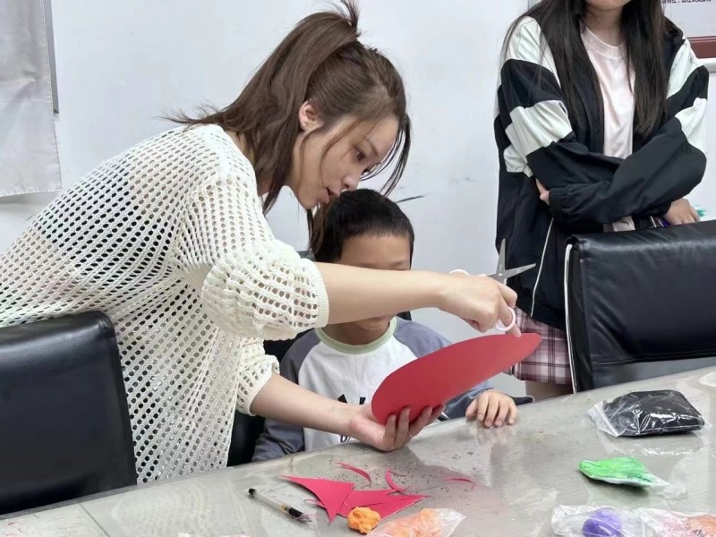 圖為志愿隊成員與小朋友制作環保手工。通訊員 胡百川 攝