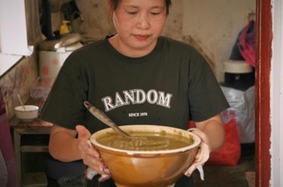 阮同學:親身體驗完擂茶粥,我感受到了它的制作是一個有力而耐心的過程,每一次的錘擊都要恰到好處,將食材碾碎融合而不飛濺,最后宛若細膩如沙狀。擂茶粥更有溫暖而細膩的滋味,仿佛能驅散所有的疲憊。粥香四溢,搭配著茶的清新,加上麥叔一家的精心烹飪,讓人回味無窮。