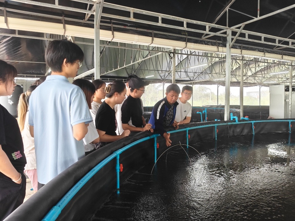 實(shí)踐團(tuán)成員前往清邁大學(xué)水產(chǎn)基地參觀羅氏蝦的養(yǎng)殖 程澤宇攝