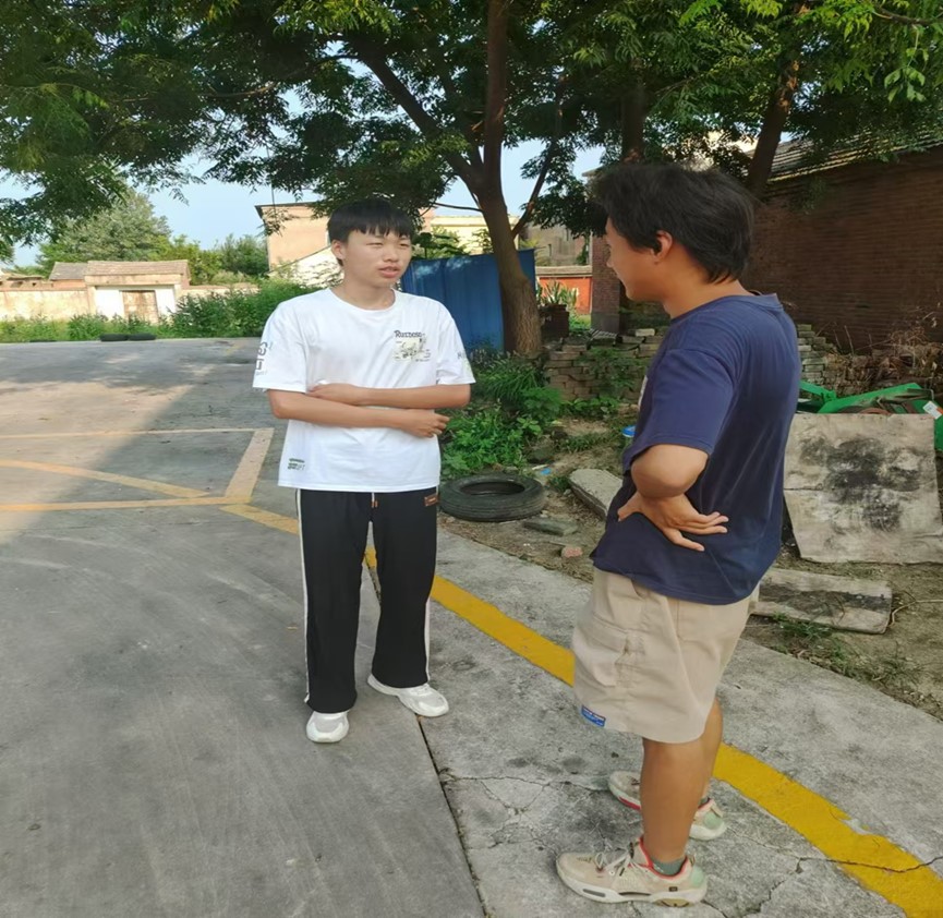 圖為實踐隊員與路人學生了解校內生活并宣傳學校 齊建偉供