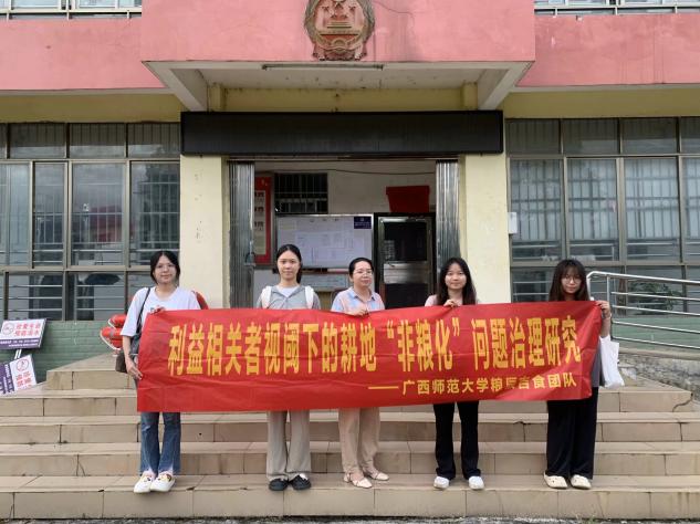 耕地,作為國家重要的農業資源和戰略資源,對于保障國家糧食安全和維護生態平衡具有重要意義。隨著國家經濟迅猛發展、城鎮化進程加速,經濟社會發展對農用耕地資源的擠壓加劇,耕地“非糧化”問題日益突出。為深入探究桂北地區耕地非糧化治理的現實問題,7月29日,廣西師范大學政治與公共管理學院“糧辰吉食”實踐團隊前往賀州市富川瑤族自治縣葛坡鎮開展耕地“非糧化”整治工作調研,共同研討推進糧食生產的對策措施,助力保障國家糧食安全。