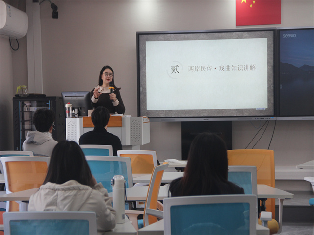 本次活動分為理論導入、歷史講解和師生互動三個環節。活動伊始,王昱敏老師從《習近平著作選讀》切入,為支部成員講解了習近平文化思想指導下的兩岸戲劇戲曲交流現狀。接著,王昱敏老師為支部成員梳理兩岸戲曲同根同源歷史,并對兩岸戲曲民俗文化做了生動詳實介紹。講座結束后,支部成員同老師進行了圓桌交流,并走上講臺分享對于《習近平著作選讀》的個人感悟,為如何實現新時代下兩岸戲曲戲劇文化交流建言獻策,活動以老師對本次團日立項活動的總結為收尾。