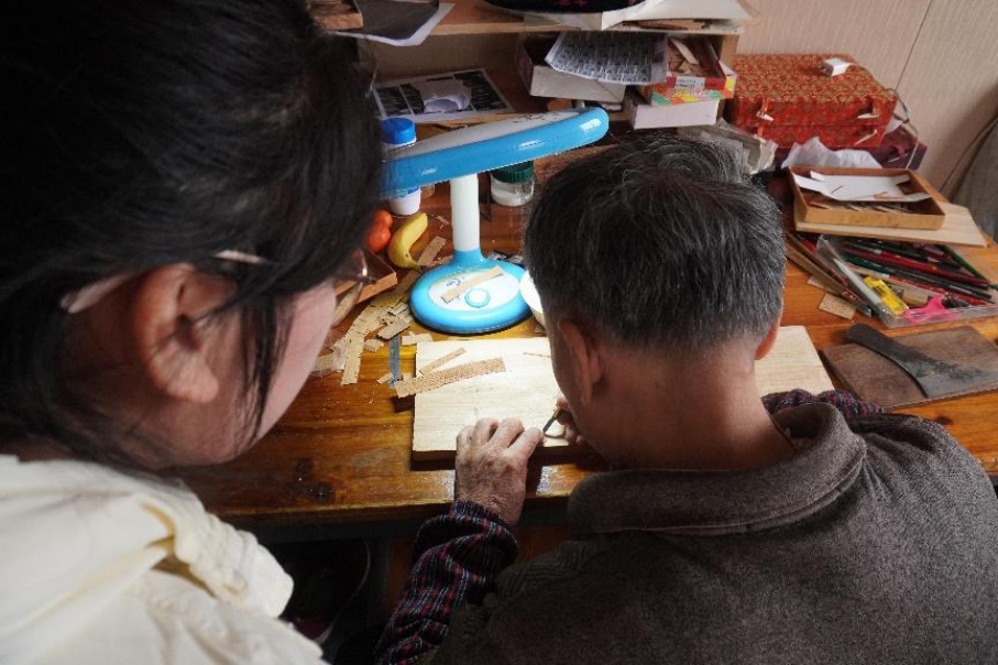 圖為實踐隊隊員向軟木畫手藝人學習軟木畫制作技藝 。蔣啟睿 供圖