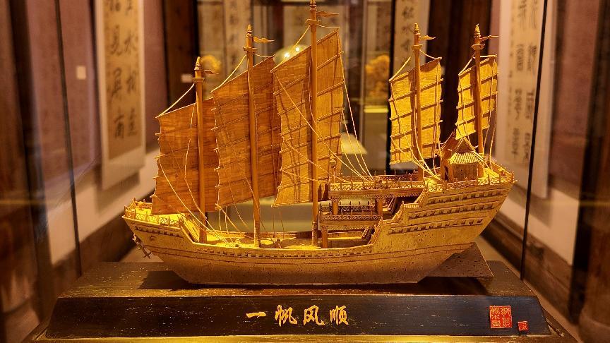 圖為博覽園內(nèi)軟木畫作品《一帆風順》。江怡瑩 供圖
