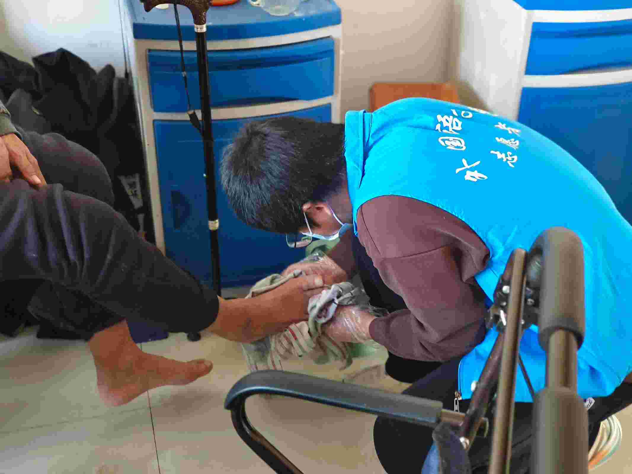 為加深青年對于老年人生活狀態(tài)的真實感悟,深刻理解“老吾老以及人之老”的真正含義,2025年1月11日,曲阜師范大學(xué)新時代文明傳習(xí)志愿者服務(wù)實踐隊在濟寧市曲阜市城東醫(yī)院拜訪各位老人。期間,實踐隊員參觀老年人活動場所、聆聽老年人的傾訴、為老人剪指甲、洗腳、大說,盡己所能做實事。