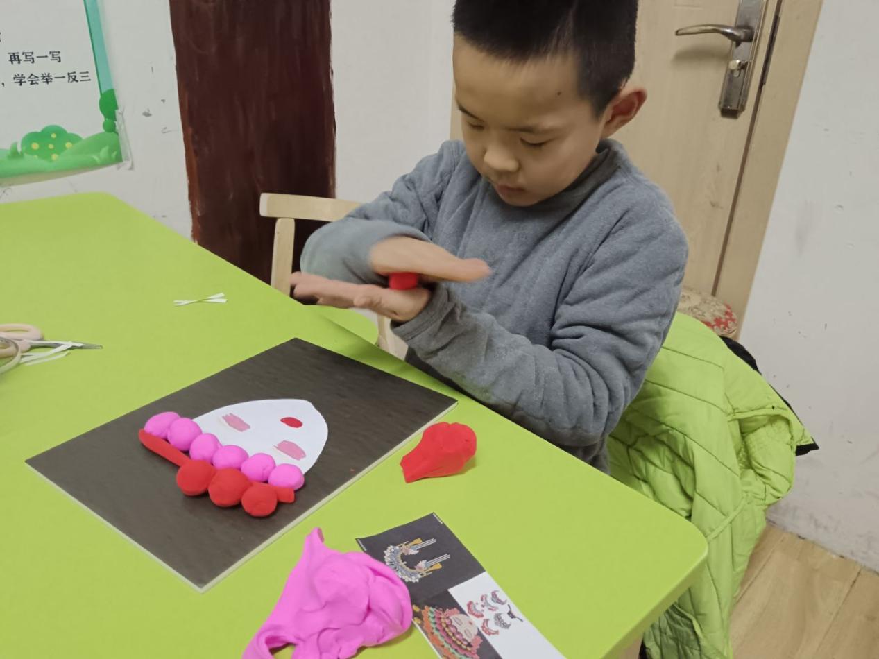 下午三點(diǎn)的的傳統(tǒng)文化手工課將活動(dòng)推向了高潮。在做燈籠的環(huán)節(jié),志愿者們?yōu)楹⒆觽儨?zhǔn)備了各種材料,耐心地講解制作步驟。孩子們小心翼翼地裁剪、折疊、粘貼,發(fā)揮自己的想象力和創(chuàng)造力,制作出一個(gè)個(gè)精美的燈籠。用粘土做戲劇人物頭飾的過(guò)程中,孩子們充分展現(xiàn)了他們的藝術(shù)天賦。他們仔細(xì)地揉搓、塑形,將五顏六色的粘土變成了一個(gè)個(gè)栩栩如生的戲劇人物頭飾。通過(guò)手工制作,孩子們不僅學(xué)習(xí)到了傳統(tǒng)文化知識(shí),還提高了動(dòng)手能力和審美能力。