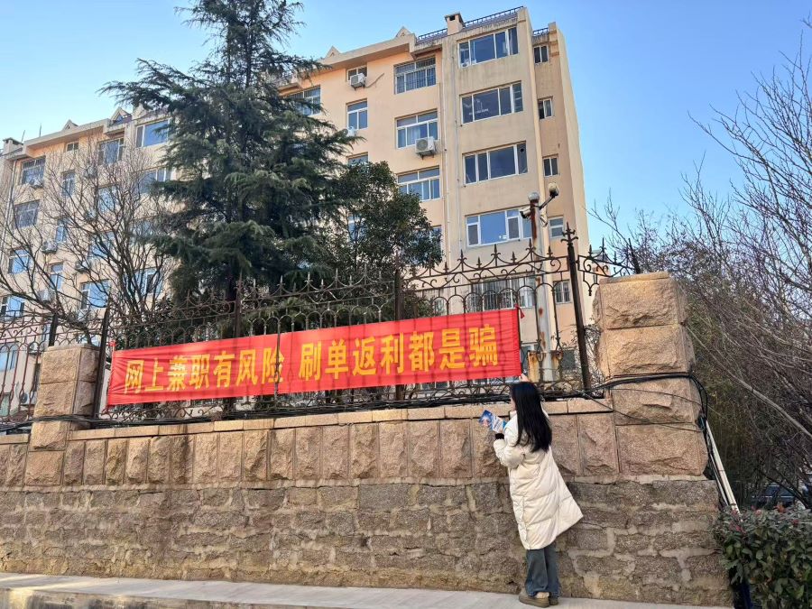 在當今社會快速發展的數字化浪潮中,老年人往往因學習能力、接受新事物速度等因素,在跟上數字時代潮流方面存在一定困難,成為網絡詐騙等問題的易受害群體。2025年1月15日,“學海助銀齡,愛心映晴空”社會實踐隊的小分隊走進山東省日照市秦家樓生活區,開展了一場旨在提高社區居民網絡詐騙防范意識的活動。隊員們在寒風中張貼宣傳橫幅與海報,以實際行動響應習近平總書記關于網絡安全的重要指示,提醒居民警惕網絡詐騙,增強安全意識,為守護老年人權益、構建安全和諧的社區環境貢獻著自己的力量。