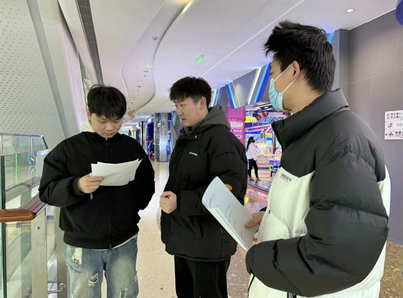 圖六:團隊成員在附近商場采訪當地居民,引導居民填寫調查問卷。實踐隊成員陳旭 攝