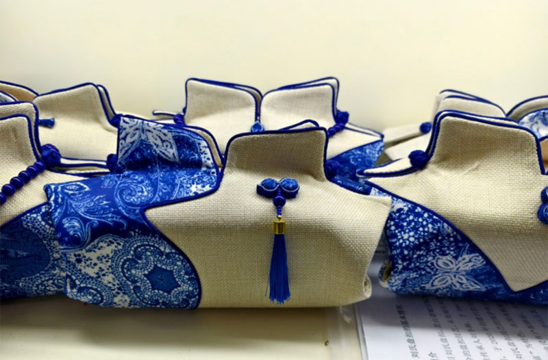 圖二:盤扣與布藝制品的結合,制作出時尚的手提包配飾,讓古老的盤扣在新時代煥發出新的生命力。實踐隊成員劉萬紅 攝