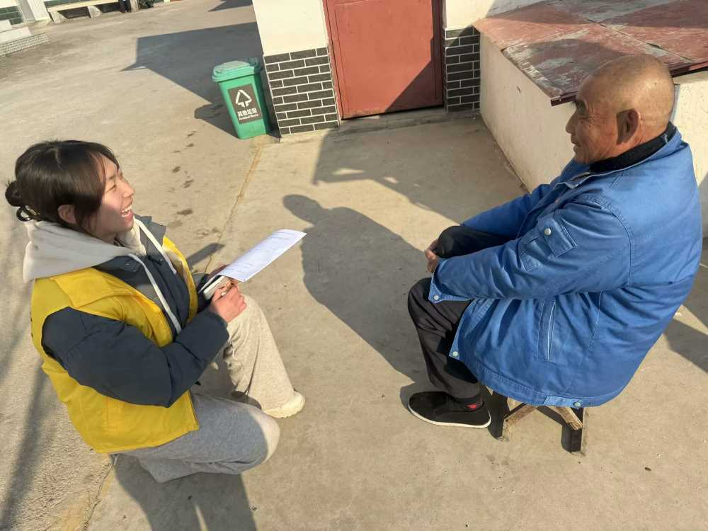 實踐隊的其中一名隊員看到了坐在外面的劉大爺,實踐隊員們深知,與老人建立起良好的關系是進行深入交流的前提。因此,他首先與劉大爺進行了親切的日常對話,詢問他的生活起居、興趣愛好等,這些看似簡單的話題卻有效地拉近了彼此之間的距離。老人在這種輕松愉快的氛圍中逐漸敞開心扉,與實踐隊員建立起了一種溫馨的互動。隨著交流的深入,實踐隊員適時地將話題轉向了活動的主題——防詐騙知識的普及。他針對老人可能遇到的詐騙情形提出了問題,老人根據自己的經驗和理解,一一為實踐隊員解答疑惑。這種雙向的交流取得了非常好的成果,不僅讓隊員們收集到了寶貴的第一手資料,也讓老人們感到自己的經驗和智慧得到了重視。