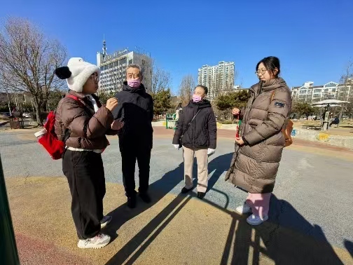 圖三是隊員在公園中采訪當地調查居民對盤扣的了解程度