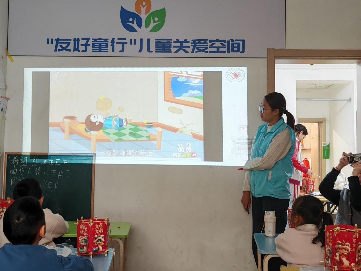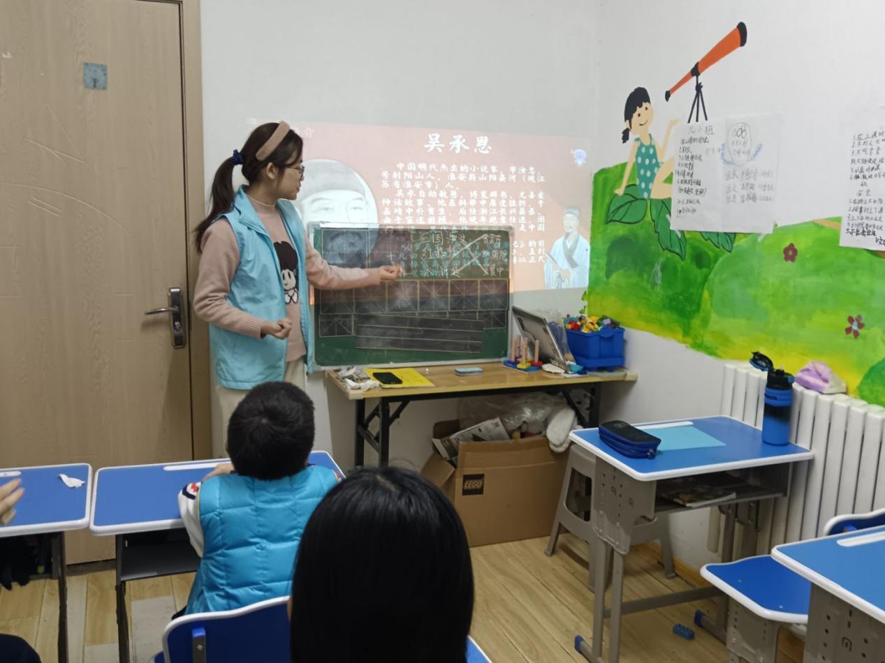 下午兩點,山大唐社志愿者戴寧靜為孩子們帶來有關西游記的趣味課程。戴寧靜同學通過詼諧有趣的講解和豐富多彩的內容,輸出經典名著《西游記》的豐富內涵。孩子們認真聽講,不時積極回答問題或提出疑問,課堂氛圍十分友好。