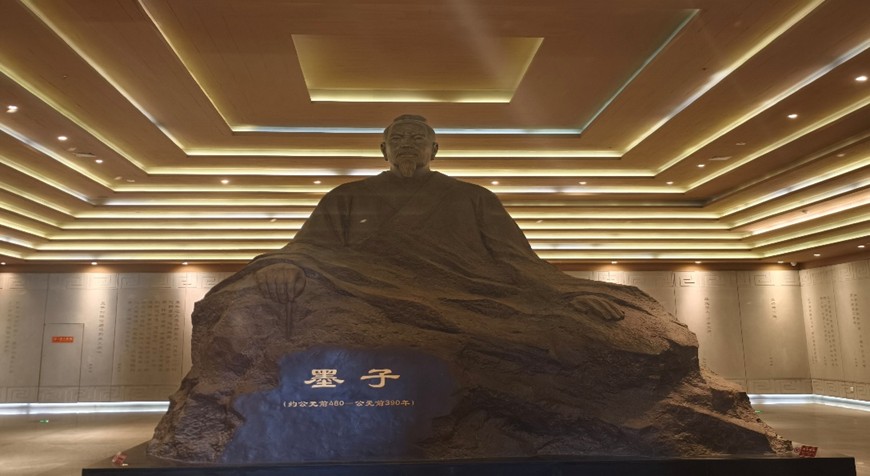 墨子紀念館以豐富形式全面展示了墨子的生平、思想體系,以及墨學的傳承與現代價值。一入館,墨子雕像目光深邃,仿佛正思索宇宙奧秘。