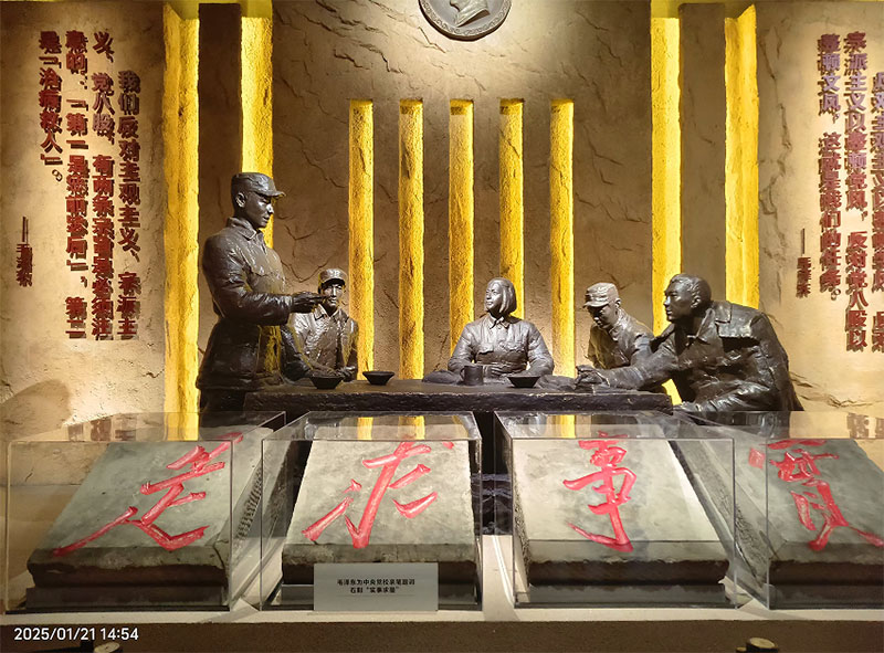 尋訪團成員們的尋訪之旅始于紀念館的大門,沿著清晰的指示牌,尋訪團成員們一步步地走進了那段光輝璀璨的歷史長河。首先吸引尋訪團成員們的是土地革命時期的展區,這里詳盡記錄了中國共產黨在逆境中如何頑強生存、不斷壯大的發展歷程。尋訪團成員們駐足在每一個展柜前,細細品味那些珍貴的文物和照片,從中深刻感受到了革命先輩們堅定的信念和不屈不撓的精神。