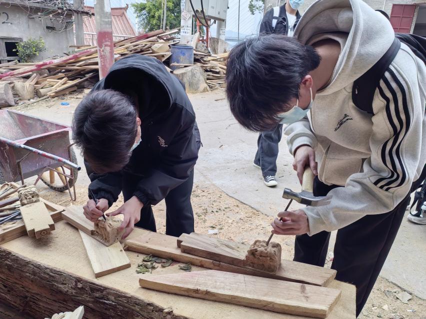 實踐隊聆聽阮師傅講述木雕背后的故事