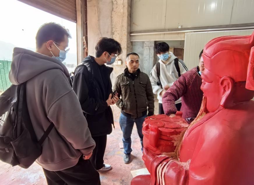 阮師傅帶領實踐隊參觀鑫福木雕廠