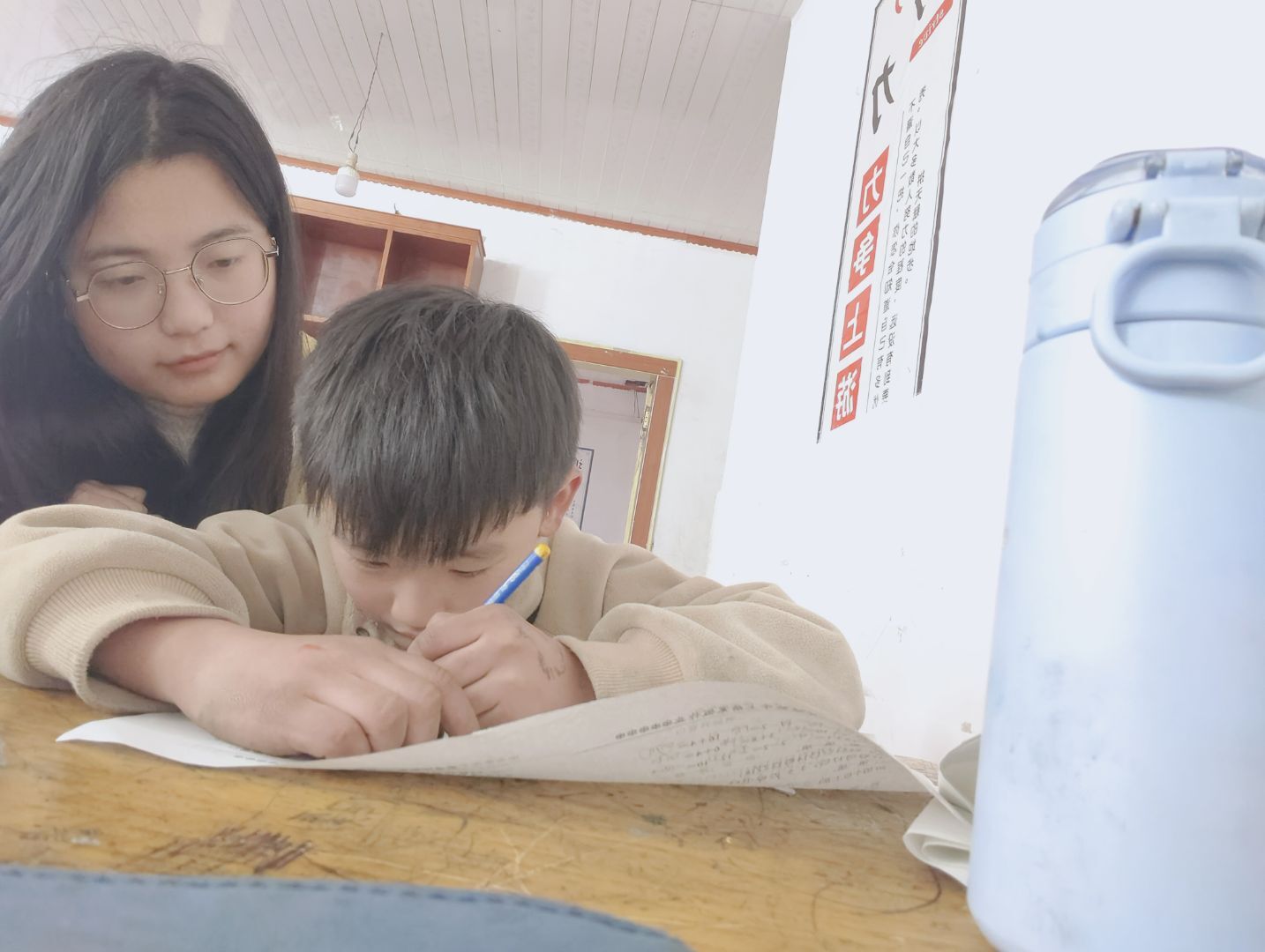 圖為實(shí)踐隊(duì)員進(jìn)行指導(dǎo)的照片 張鴻研供圖 大約過了一個(gè)小時(shí),同學(xué)們都完成了自己的活動(dòng)感悟。我們邀請(qǐng)了幾位同學(xué)上臺(tái)分享他們的作品。一位同學(xué)站起來,有些緊張但又充滿感情地朗讀著自己的感悟。他的聲音雖然有些稚嫩,但每一個(gè)字都飽含著對(duì)紅色精神的理解和向往。臺(tái)下的同學(xué)們認(rèn)真傾聽,不時(shí)報(bào)以熱烈的掌聲。有的同學(xué)在聽到共鳴之處時(shí),還會(huì)默默點(diǎn)頭,仿佛在心底與分享者進(jìn)行著深刻的交流。