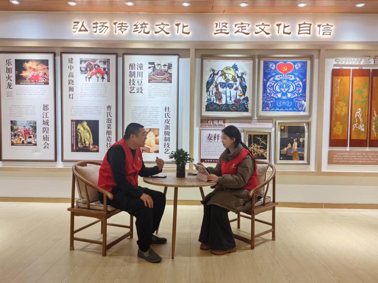 宣講結束后,團隊對三臺縣圖書館館長胡昌樂和三臺縣心連心志愿者協會負責人劉世偉進行了采訪,具體涵蓋了文化陣地建設、非遺保護傳承與未來規劃需求三個部分。