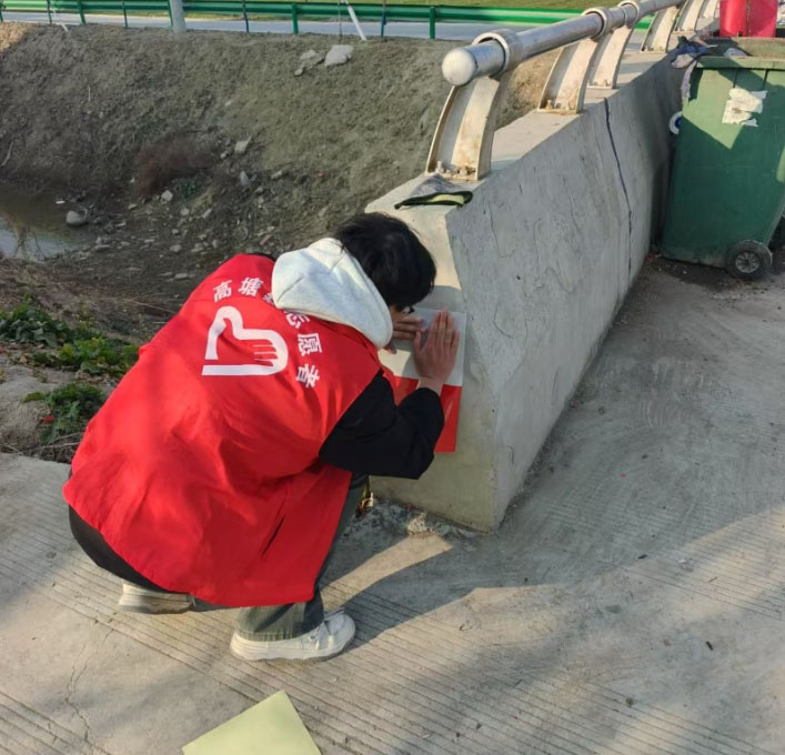 (大學(xué)生協(xié)助村委會(huì)張貼告示 劉志然供圖)