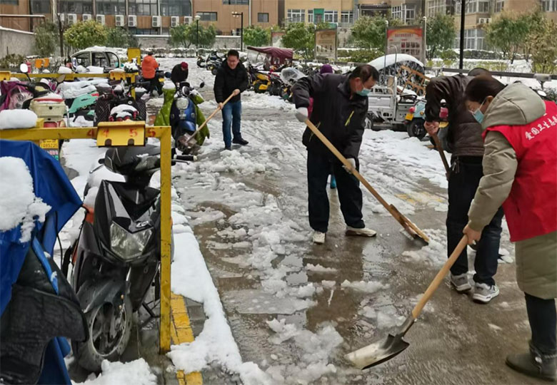 清晨,掃雪隊伍就已集結完畢。大家手持鐵鍬、掃帚等工具,分工明確,配合默契。社區工作人員一馬當先,鏟起堆積在道路上的厚雪;志愿者們則專注清掃人行道和樓梯口,不放過任何一處死角;路過的居民也自發加入,有人幫忙運送積雪,有人為大家遞上熱水。盡管天氣寒冷,大家的手和臉都被凍得通紅,但每個人都干勁十足,現場熱火朝天。盡管寒風凜冽,雪花不時飄落,大家的手和臉被凍得通紅,但沒有一人退縮。經過數小時奮戰,社區內主要道路和公共場所的積雪被清理干凈,為居民開辟出一條條“安全通道”。