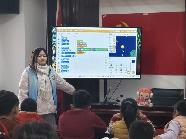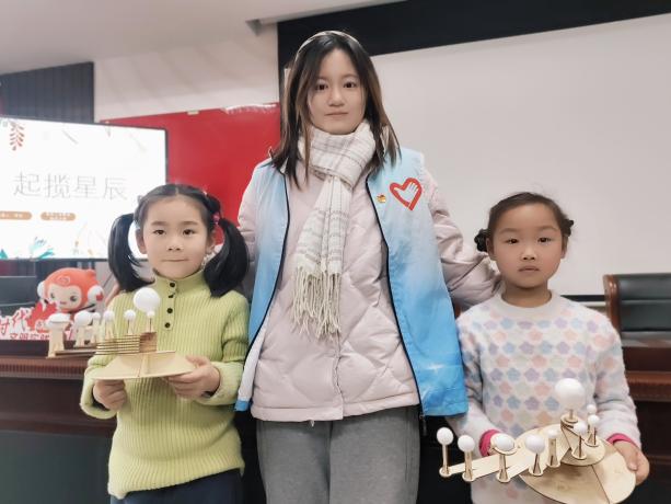 為了激發(fā)社區(qū)兒童探索自然世界的興趣,拓展社區(qū)兒童的科技視野,充實(shí)社區(qū)兒童的科技文化積淀,志愿者們精心準(zhǔn)備了一場(chǎng)關(guān)于太陽(yáng)系的科普講座。讓孩子們從了解自然,模擬自然,學(xué)會(huì)走向探究自然、改造自然。實(shí)踐團(tuán)志愿者們精心設(shè)計(jì)了星辰編程課,手把手輔導(dǎo)孩子們利用Scratch平臺(tái)模擬了行星圍繞太陽(yáng)運(yùn)行的軌跡,以“學(xué)一贈(zèng)一”的詼諧,向孩子們科普了太陽(yáng)系中各行星的基本知識(shí)和特點(diǎn)。志愿者們還指導(dǎo)孩子們還利用木制工具,搭建起立體而精致的太陽(yáng)系模型,在實(shí)踐中激發(fā)孩子們對(duì)天文的興趣,培養(yǎng)他們的創(chuàng)新思維與動(dòng)手能力。