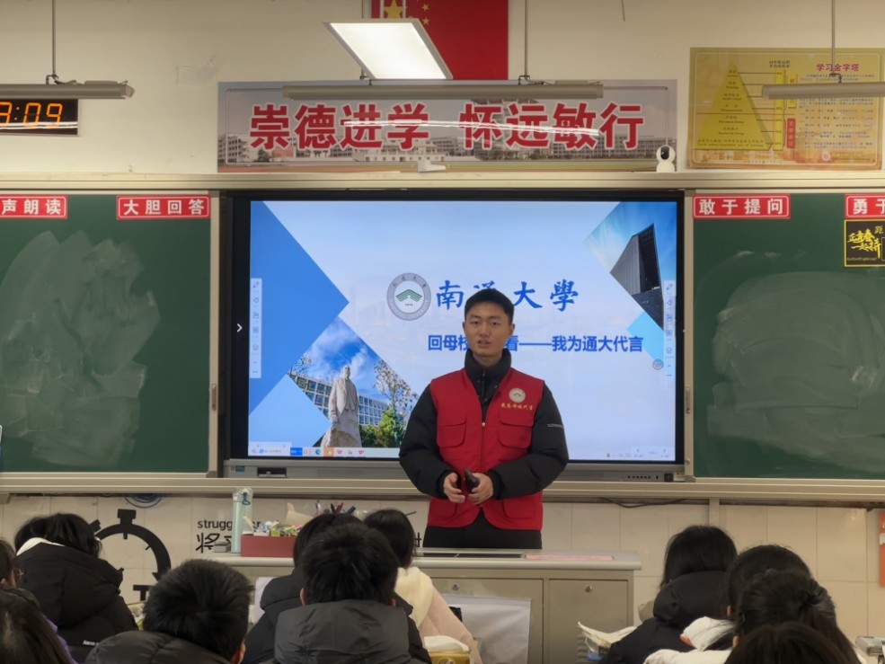 為積極響應南通大學寒假社會實踐專項活動號召,進一步提升南通大學的社會知名度與影響力,加強與高中母校的聯系與交流,1月19日上午,通大回響·實驗宣講團的成員們回到了江蘇省南通市海門實驗學校,開展了一場精彩的南通大學招生宣講活動。此次活動不僅為母校的學弟學妹們帶來了最新的大學資訊,也讓宣講學生在實踐中收獲頗豐。