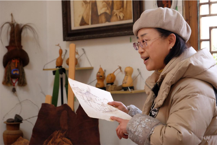 圖為李彩蘭老師為隊員們介紹烙畫 陳蜀 供圖