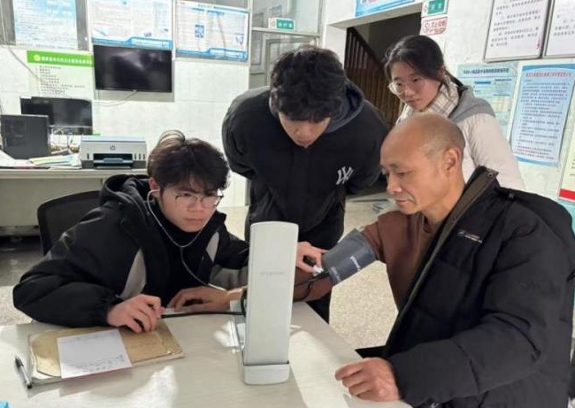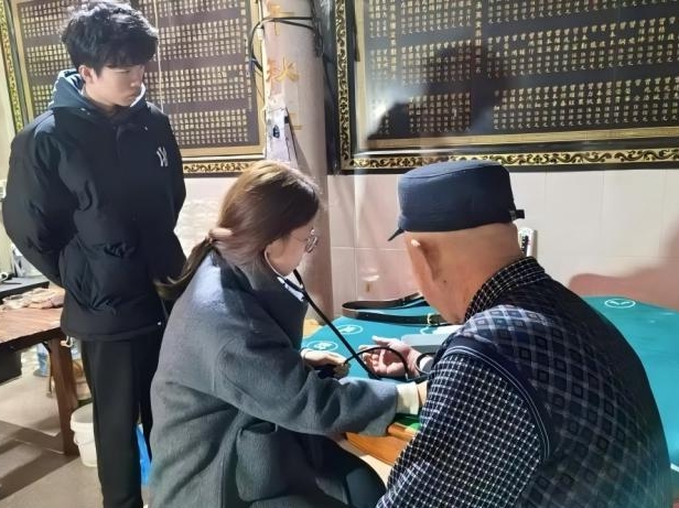 在感受非遺文化魅力的同時(shí),隊(duì)員們也積極發(fā)揮專業(yè)特長(zhǎng),在長(zhǎng)樂(lè)區(qū)感恩村,為村民送去健康關(guān)懷。隊(duì)員們分工協(xié)作,為村民們測(cè)量血壓。針對(duì)血壓偏高的村民,隊(duì)員們還細(xì)心詢問(wèn)了他們的生活習(xí)慣并提出建議。最后,隊(duì)員們還為村民們科普了高血壓防治、冬季養(yǎng)生小貼士等知識(shí),幫助村民們樹(shù)立健康意識(shí)。