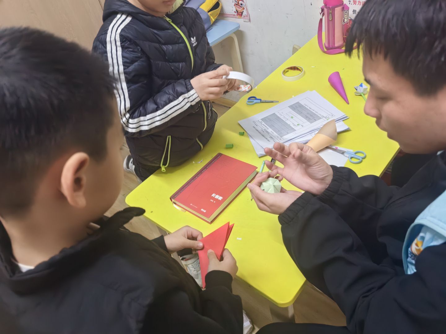 活動(dòng)尾聲的創(chuàng)意手工課上,山大唐社志愿者手把手教授玫瑰花折紙技藝。從紙張折疊到造型調(diào)整,孩子們?cè)谥讣饬鬓D(zhuǎn)中感受傳統(tǒng)手工藝的魅力。當(dāng)一朵朵栩栩如生的紙玫瑰在課桌上綻放,藝術(shù)創(chuàng)造的成就感洋溢在每個(gè)孩子的笑臉上。
