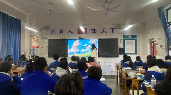 圖為天天向上小隊(duì)成員徐嘉欣在母校遵義市第十四中學(xué)宣講江科大 問(wèn)興語(yǔ) 供圖