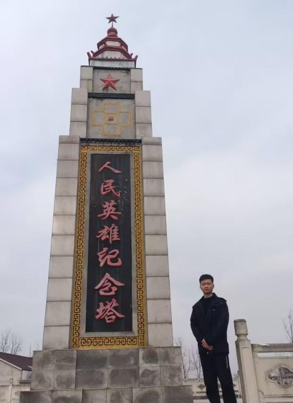 圖為陳世雙同學在三尖鋪紅色旅游文化中心前合影 通訊員 孟陽 攝